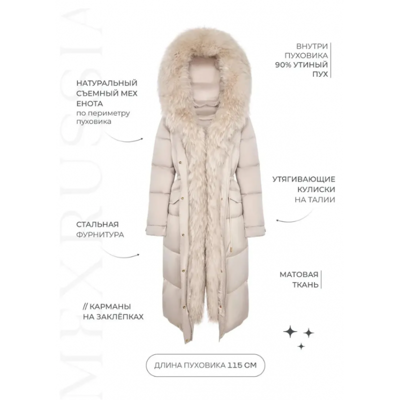Люксовый пуховик с глубоким капюшоном и натуральным мехом енота по периметру – новый тренд зимней коллекции 2024 - 2025. Такая эффектная модель премиум-класса должна быть у каждой девушки. Капюшон и съемная меховая опушка - прекрасно согревает голову и придает образу роскошь. Женская элитная куртка прямого кроя созданный для тех, кто ценит безупречный стиль и непревзойденный комфорт. Ткань с водонепроницаемым и ветрозащитным покрытием имеет неоднородный стильный оттенок. Специальная пропитка защищает от влаги и грязи. Дизайнерский модный оверсайз (oversize) можно носить в свободном варианте или приталить с помощью кулисок - поможет подчеркнуть талию и создать утонченный образ. Натуральный утиный пух невероятно легкий и теплый, сохраняет комфорт даже при температуре -30 градусов. Парка имеет удобные вместительные карманы и широкие длинные рукава. Есть два вида застегивания: мехом наружу и мехом во внутрь. Надежная стальная фурнитура в виде молнии и кнопок - детали, которые подчеркивают качество и премиальность. Чтобы правильно подобрать размер изделия, советуем использовать таблицу в карусели фото. ОБРАТИТЕ ВНИМАНИЕ! После получения изделия - обработайте внешнюю часть и мех отпаривателем. Мех причешите чесалкой для животных или обычной массажной расчёской. При расчесывании будет выходить лишний подпушек, он есть у всех новых меховых изделий (спустя несколько недель он полностью уйдёт). Длина по спинке 115 см. Удлиненный фасон - до колен, надежно защищает от холода и ветра. Будет отлично смотреться как на высоких, так и на девушках с невысоким ростом. Длина изделия подходит стройным и полным женщинам больших размеров, комфортный крой для беременных. Ультралегкий зимний вариант будущим мамам для повседневной носки. Убедитесь сами, насколько верхняя одежда может быть практичной и удобной, пополните гардероб пуховиком бренда MEXRUSSIA! Мы будем очень рады вашим отзывам, особенно счастливы видеть фото ваших ярких луков.