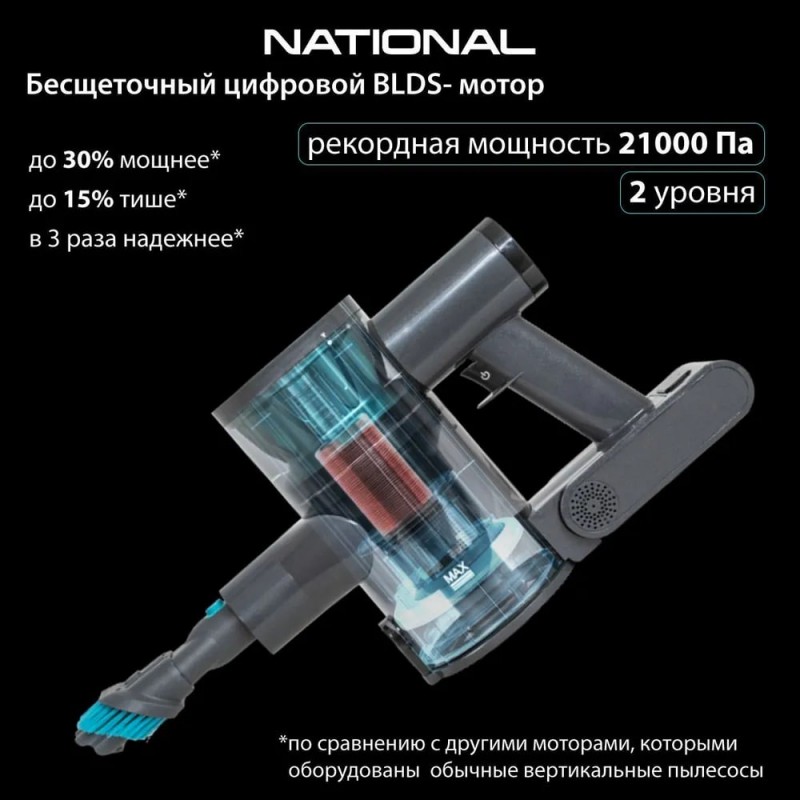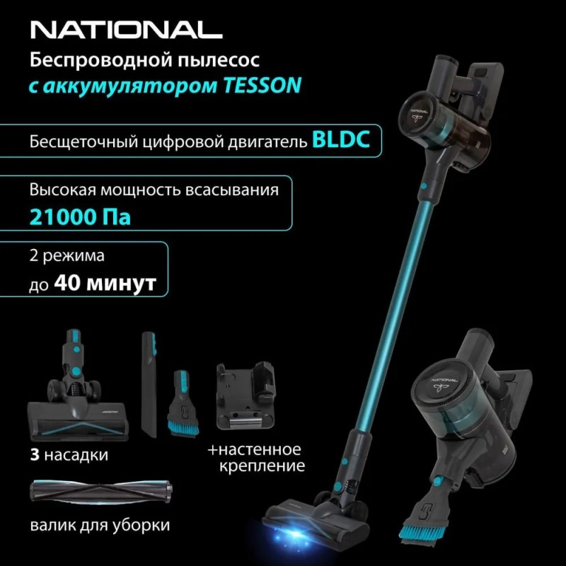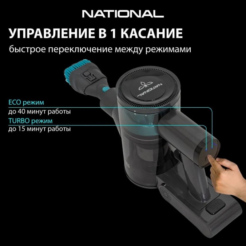 Мощный и удобный беспроводной вертикальный пылесос с подсветкой 2 в 1 National NH-VS1415 — идеально подойдет для домашнего использования.