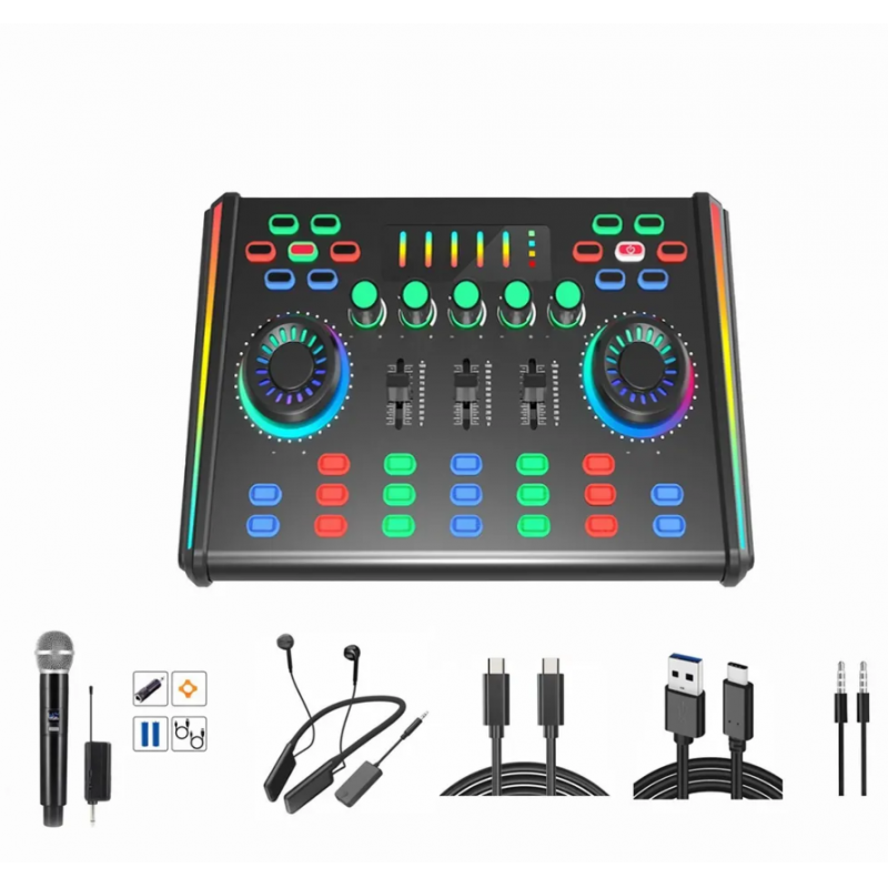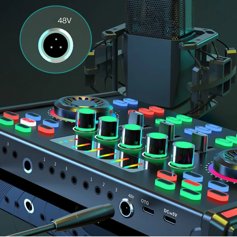 Микшерный пульт с микрофоном – это универсальный аудио помощник для создания качественного звука. Этот звуковой микшер создан для тех, кто ценит высокое качество звука и удобство управления. Он идеально подходит для подключения к ПК, а также для использования в домашних и студийных условиях. Благодаря встроенному усилителю и широкому диапазону частот от 20 Гц до 20 кГц, этот микшерный пульт позволяет точно настроить звучание, от глубоких басов до чистых высоких нот, делая звук мощным и детализированным. Особенностью микшера с микрофоном является поддержка Bluetooth версии 2.1, а также наличие проводов различных форматов, способных обеспечить подключение к нужному устройству. Встроенный аккумулятор обеспечивает микшеру долгую работу без необходимости частой подзарядки, что позволяет использовать его в любом месте без привязки к источнику питания. Номинальная мощность 5 В обеспечивает стабильную работу, а металлический корпус не только придаёт устройству современный и стильный вид, но и делает его прочным и надёжным, защищая внутренние компоненты от повреждений. Этот микшерный пульт с микрофоном – это сочетание функциональности и качества в одном устройстве. Простое управление и множество настроек позволяют настроить звук под любые нужды: от записи голоса и микса до проведения онлайн-трансляций и подкастов.